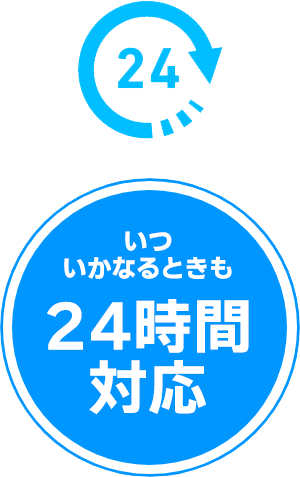 24時間365日受付、年中無休でいつでもトラブルに対応します。