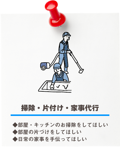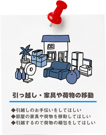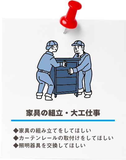 部屋の片付け、掃除 · 家具の移動、組み立て